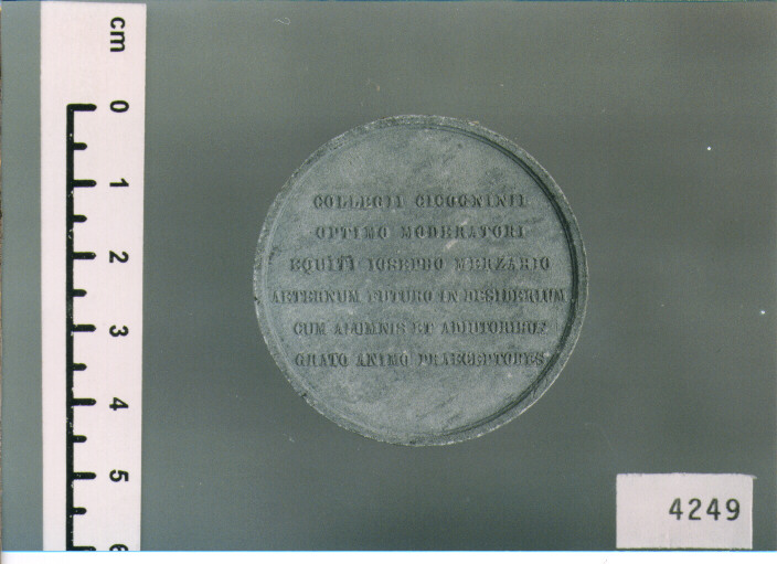 D/ PRATI DIE XVI KAL. FEB. ANN. MDCCCLXXV, STEMMA DI PRATO; R/ COLLEGII CICOGNINII/ OPTIMO MODERATORI/ EQUITI IOSEPHO MERZARIO/ AETERNUM FUTURO IN DESIDERIUM/ CUM ALUMNIS ET ADIUTORIBUS/ GRATO ANIMO PRAECEPTORES