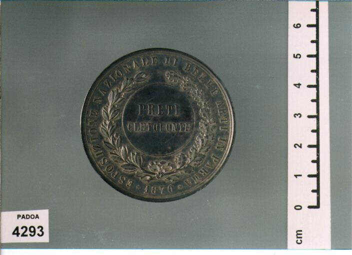 D/ FRANCESCO MAZZOLA ANTONIO ALLEGRI, DUE TESTE ACCOLLATE A S.; SOTTO, D.BENTELLI; R/ ESPOSIZIONE NAZIONALE DI BELLE ARTI IN PARMA 1870; NEL CAMPO, PRETI/ CLETOFONTE, ENTRO CORONA DI QUERCIA E ALLORO