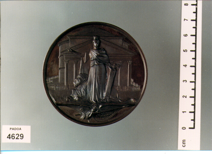 D/ TESTA A S.; NEL GIRO DATE, NOMI E AVVENIMENTI STORICI; R/ FIGURA FEMMINILE ALLEGORICA TURRITA STANTE CON FASCIO NELLA MANO S. E ALLE SPALLE IL PANTHEON