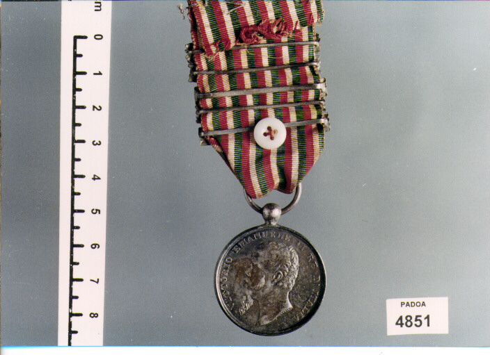 D/ VITTORIO EMANUELE II RE D'ITALIA, TESTA A S.; NEL TAGLIO, CANZANI; R/ GUERRE PER L'INDIPENDENZA E L'UNITA' D'ITALIA