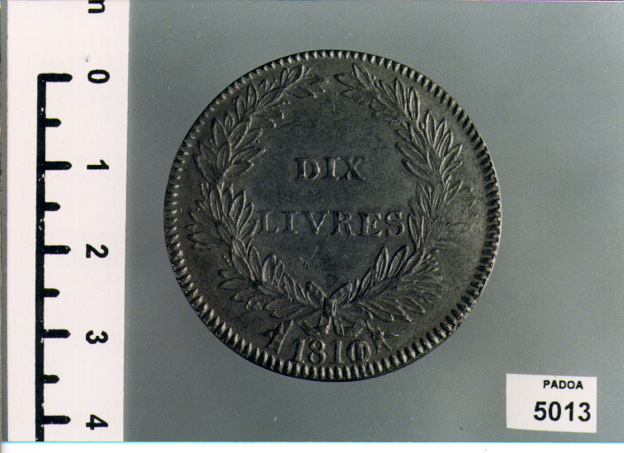 D/ ILES DE FRANCE ET BONAPARTE, AQUILA SORMONTATA DA CORONA; SOTTO, AVELINE.; R/ DIX/ LIVRES, ENTRO CORONA DI ALLORO; SOTTO, 1810