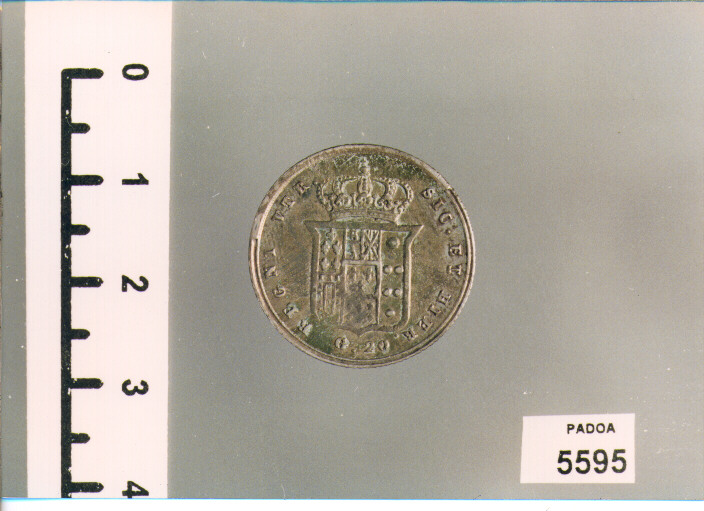 D/ FERDINANDVS II DEI GRATIA REX, TESTA A D.; SOTTO, 1855; R/ REGNI VTR. SIC. ET HIER., STEMMA CORONATO; SOTTO, G. 20. TAGLIO: RIGATO