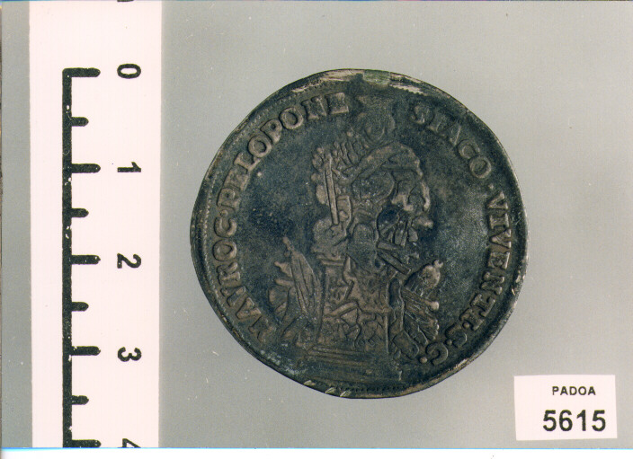 D/ . S. M. VEN. FRANC. MAVROCE. DVX., S. MARCO SEDUTO A D. BENEDICE IL DOGE GENUFLESSO; IN ESERGO, ANNO. IV/ .I. B.; R/ MAVROC. PELOPONESIACO. VIVENTI. S. C., MEZZA FIGURA DEL DOGE IN ABITO DI GENERALISSIMO SU ALTO PIEDISTALLO