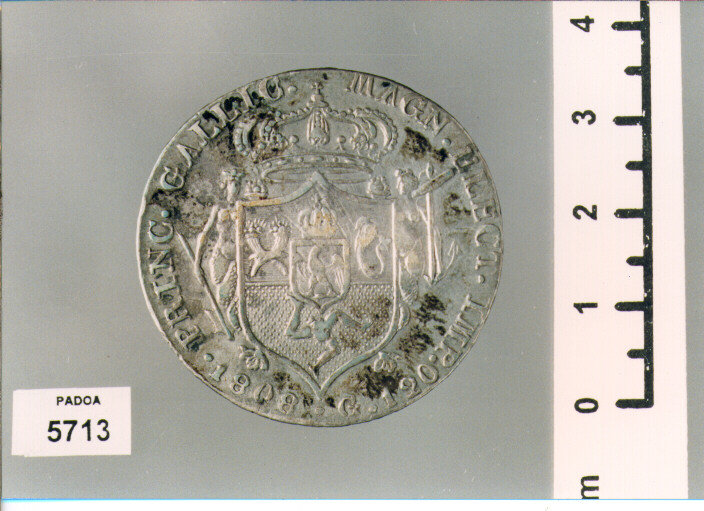 D/ IOSEPH NAPOL. D. G. VTR. SICIL. REX, TESTA A S.; R/ PRINC. GALLIC. MAGN. ELECT. IMP., STEMMA CORONATO FIANCHEGGIATO DA DUE SIRENE; SOTTO 1808. G. 120. TAGLIO: CUSTOS REGNI DEUS, SEI DELFINI