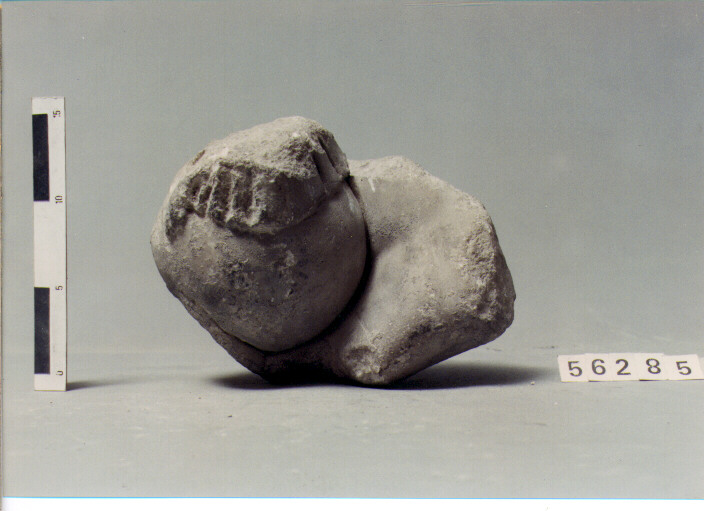 MANO DESTRA DI STATUA PIU' GRANDE DEL VERO, CHE REGGE UN GLOBO SU CUI POGGIAVA UNA STATUETTA PANNEGGIATA, DI CUI RESTA UN PIEDE E PARTE DEL PANNEGGIO