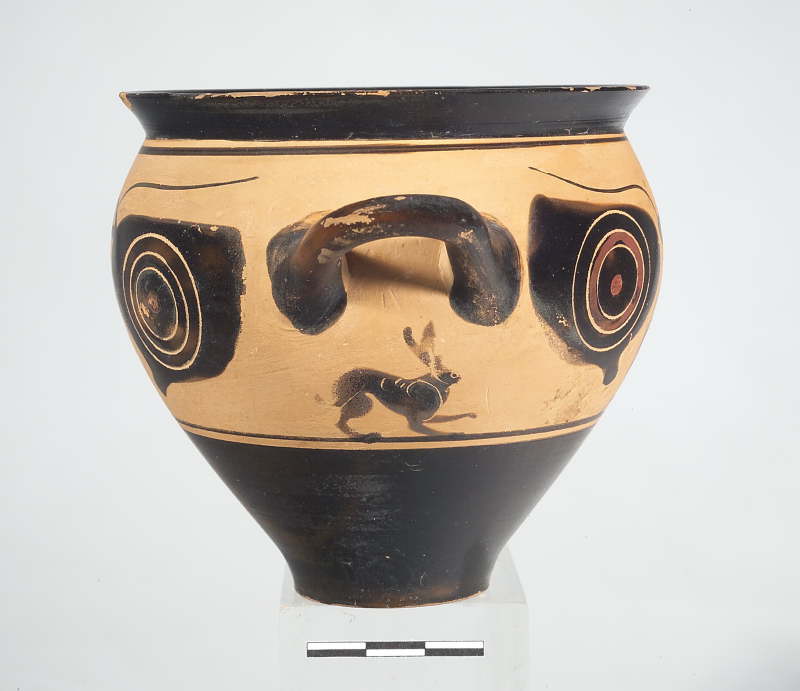 skyphos attico a figure nere con giovane nudo tra "occhioni"