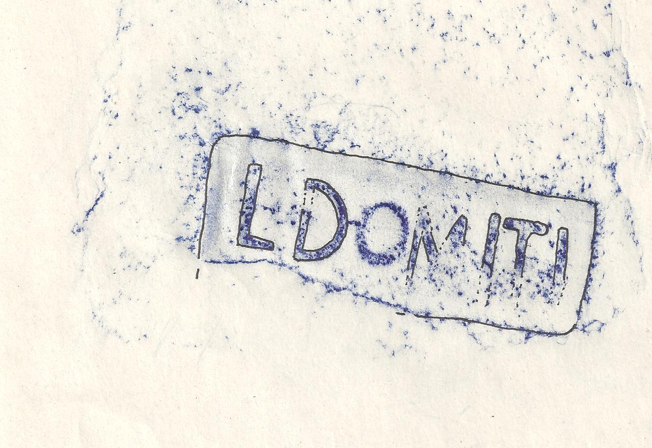 elementi architettonici e di rivestimento, materiali da costruzione, tegola . frammento di tegola con impressione di bollo rettangolare, (9,7x3,4, lit. 2-2,1). L DOMITI (CIL XV 1121a, Steinby 886)