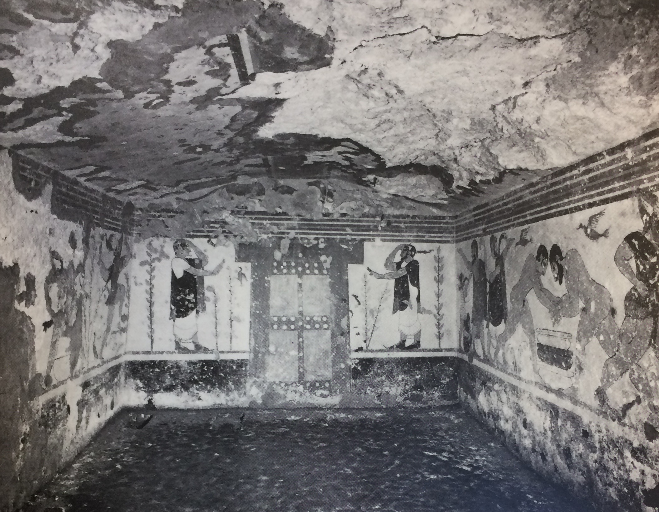 - NOTIZIE STORICO CRITICHE Il nome della tomba deriva dall'erronea intepretazione delle figure virili sulla parete di fondo, data al momento della scoperta del sepolcro. La decorazione pittorica è stata attribuita ad un artista greco orientale, probabilmente proveniente dalla Ionia settentrionale