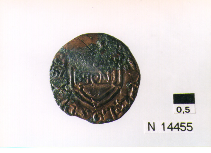 R/ scudo coronato contenente in una fascia iscrizione; V/ tre spighe legate da un ramoscello d'ulivo,