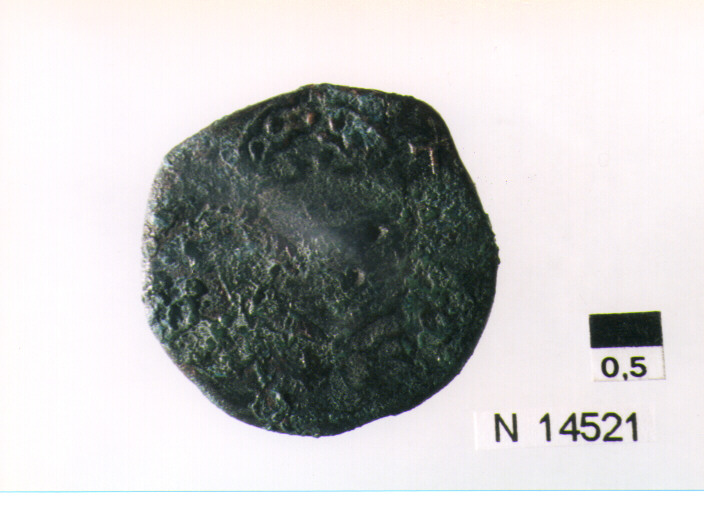 R/ scudo coronato contenente in una fascia iscrizione; V/ tre spighe legate da un ramoscello d'olivo,