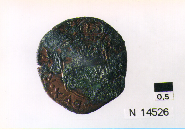 R/ scudo coronato contenente in una fascia iscrizione; V/ tre spighe legate da un ramoscello d'olivo,
