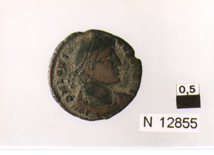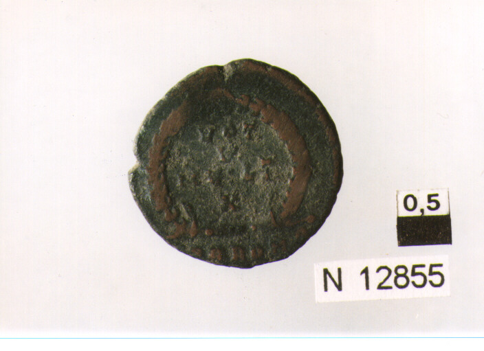R/ busto drappeggiato e corazzato di Iovianus con diadema perlinato a destra; V/ corona d'alloro contenente iscrizione,