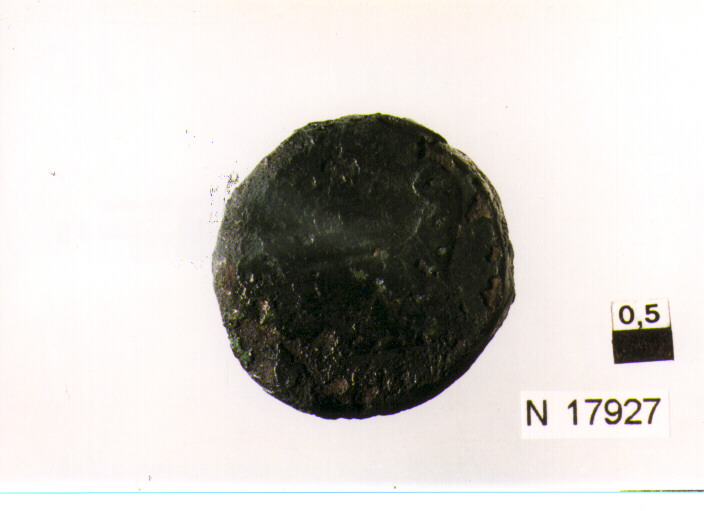 R/ testa elmata di Roma a sinistra, dietro segno del valore (un globetto); V/ prua a destra, sotto segno del valore iscrizione,