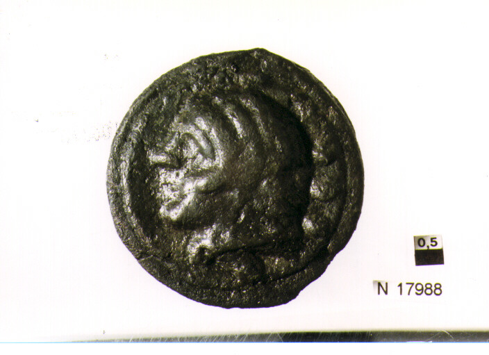 R/ testa di Ercole a sinistra, dietro tre globetti; V/ prua a destra, sotto tre globetti,