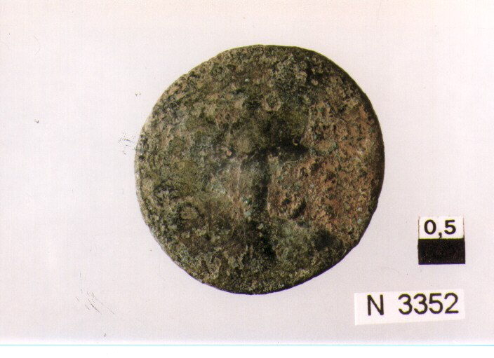R/testa laureata di imperatore Commodo(?) a destra; V/ figura drappeggiata femminile stante non id,