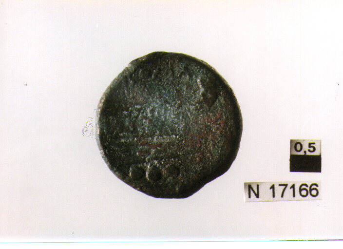 R/ testa di Minerva a destra sopra quattro globetti; V/ prua a destra, sotto quattro globetti, sopra iscrizione,