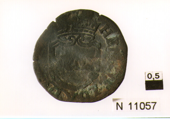 R/ scudo coronato contenente fascia inscritta; V/ tre spighe legate ad unramoscello d'olivo,