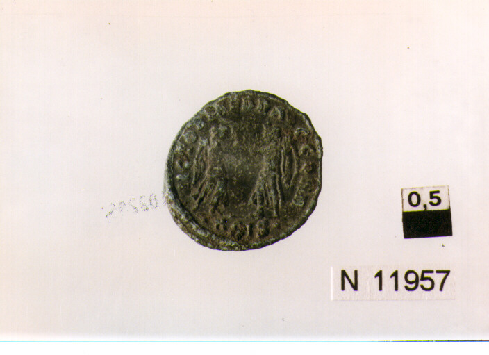R/ busto drapppeggaito, corazzato e diademato di Costanzo a destra; V/ duevittorie rivolte l'una verso l'altra, ciascuna con corona,