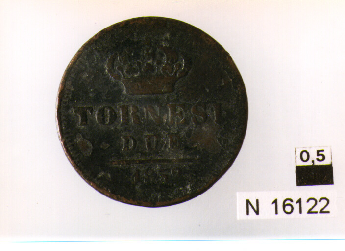 R/ testa del re barbuta con capelli alzati volta a destra; V/ corona reale sormontante iscrizione,