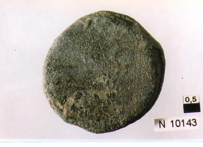 R/ busto diademato a destra; V/ corona d'alloro contenente iscrizione,