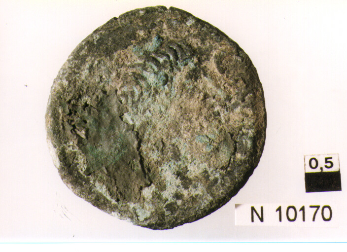 R/ testa di Ottaviano a destra; V/ testa di Giulio Cesare a destra,