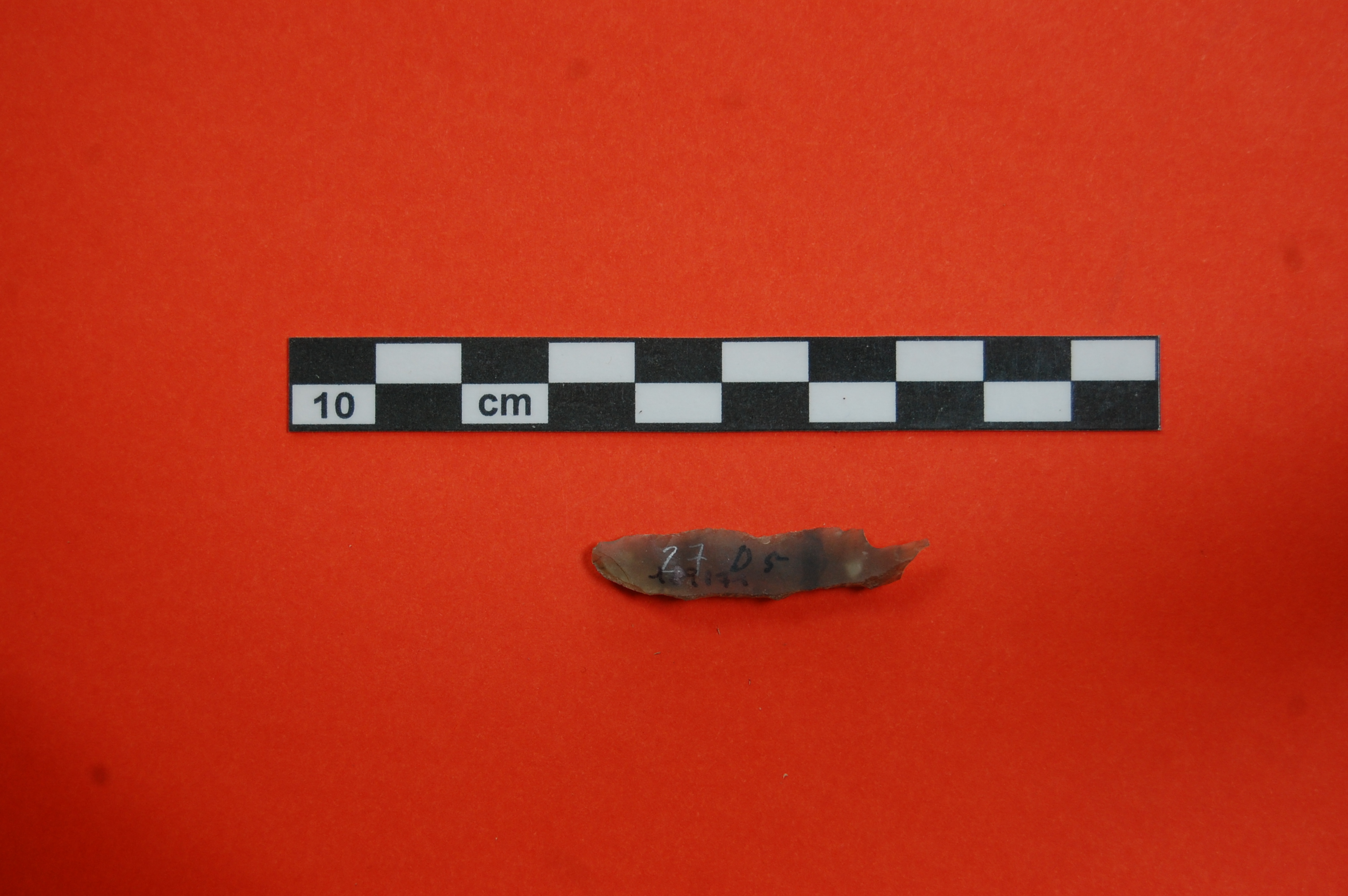 Lamella a dorso in selce con intaccatura; ritocco erto e regolare