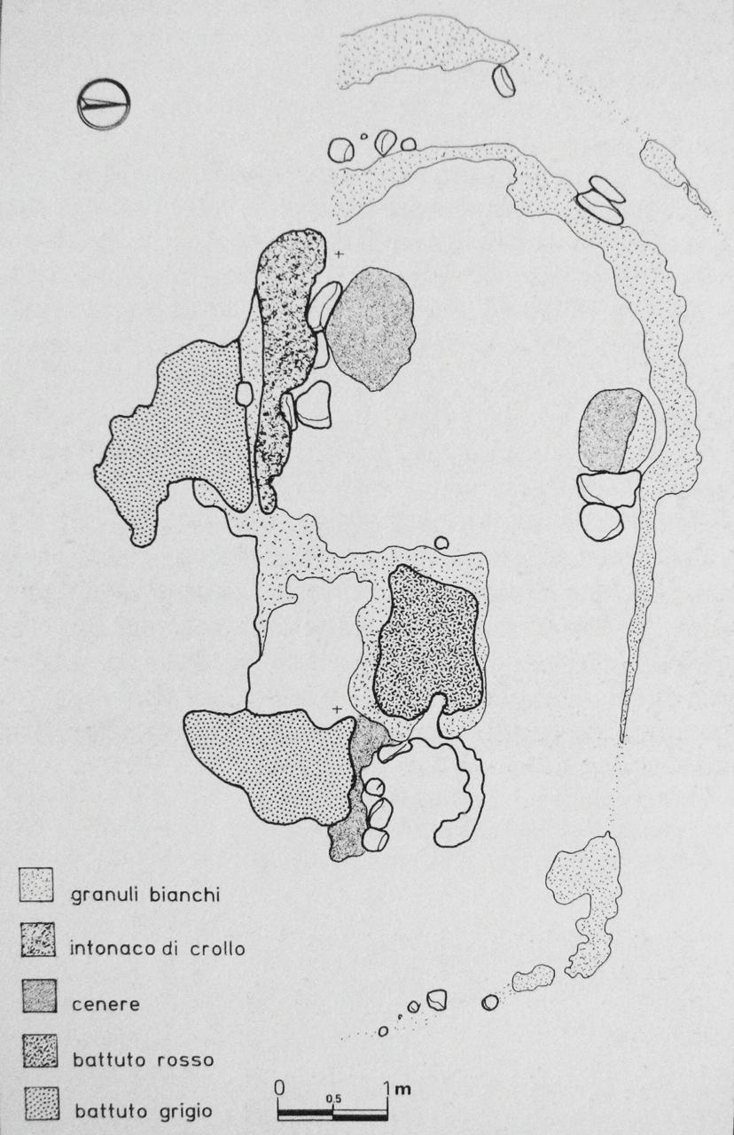 La località Arcora/Difensola si trova su di una piattaforma naturale poco lontano dal mare, delimitata a nord dal vallone Giardino, mentre lungo i margini SE ed E è difesa naturalmente dal costone che la separa dal mare. In base a recenti studi topografici e aereofotogrammetrici, emerge che questo costone corrisponde all’antica linea di costa, e pertanto, in età protostorica, l’abitato di Arcora doveva sorgere su di un altopiano che dominava il mare. Il terrazzo, quindi, occupava una posizione strategica, naturalmente difesa e in grado di assicurare il controllo sul mare e sulla foce del Biferno, fiume che, probabilmente solo in alcuni tratti, era navigabile e permetteva la comunicazione con l’immediato entroterra. Il sito è oggetto di scavi archeologici da parte della Soprintendenza del Molise dai primi anni ’80. Gli scavi hanno permesso di datare l’abitato ad un arco cronologico che va dall’Età del bronzo finale al VII secolo a.C., e comunque non oltre l’età arcaica, dal momento che non sono presenti dati relativi ai secoli successivi, né rioccupazione del sito in età medievale o moderna. Sono state riconosciute due fasi principali di occupazione, la prima tra VIII e VII, e l’altra tra VI e V secolo a.C. L’area di scavo è stata divisa in due settori chiamati “Zona A” e “Zona B”. Queste due zone corrispondono a due nuclei abitativi distinti, di cui, però, sono ancora da chiarire i rapporti di relazione che li coinvolgono. È chiamata zona A l’area situata nella parte sud-occidentale della piattaforma, mentre, zona B quella ai margini del costone parallelo alla linea litoranea. È stato indagato anche lo spazio intermedio tra le due zone abitative, quello maggiormente utilizzato durante l’ultima guerra, e che risulta privo di emergenze archeologiche significative. Quest’area doveva essere destinata a uso comune, e, probabilmente, riservata ad attività domestiche, come agricoltura e allevamento. La prima zona è la più antica, infatti, è stata datata al periodo tra l’Età del Bronzo finale e la prima Età del Ferro, mentre, la zona B, è ascrivibile al VII secolo a.C. Le capanne della zona A risultano maggiormente sconvolte dalle arature e mezzi meccanici, per tanto appaiono meglio leggibili gli strati più antichi. Dall’andamento delle buche per pali si deduce che la pianta delle capanne era di forma rettangolare con abside su uno dei lati più corti. Il piano interno delle capanne risulta scavato nel terreno vergine di circa 30 – 50 m, in modo da essere più basso rispetto al piano di calpestio esterno. In un caso, nella parte esterna dell’abside sono stati rinvenute tracce di caolino sottoforma di granuli bianchi, con funzioni di impermeabilizzazione. È documentata la scelta di due tipologie pavimentali, diverse per l’interno o l’esterno delle abitazioni. Infatti, il pavimento che si trova all’interno delle capanne è costituito da un battuto di argilla cotta, al di sotto del quale, a contatto con il terreno vergine, è stata notata la presenza di una sorta di “sottopavimento”, realizzato con lastre di pietra e ciottoli. La superficie esterna alle abitazioni è formata da un pavimento in terra battuta formato da ghiaia e ciottoli mescolati a ossa animali frantumate, relative a resti di pasto, e frammenti ceramici, per lo più di impasto grossolano. Nel piano interno erano ricavate fosse per l’alloggiamento di grandi vasi, ritrovati in situ, e, di solito, si trovavano disposti lungo tutto il perimetro interno dell’abitazione. Questi contenitori ceramici, per lo più grandi dolia, erano senza dubbio destinati allo stoccaggio di prodotti di genere alimentare. Infatti, al loro interno sono stati recuperati una grossa quantità di semi carbonizzati, relativi soprattutto al Triticum dicoccum, ma anche alla Vicia faba, la fava, al Hordeum vulgare, l’orzo, e a semi di acini d’uva selvatica. All’interno di una delle capanne è stata messa in luce una serie di fornelli stabili ricavati da muretti di argilla, che erano disposti intorno a piccole fosse, scavate al di sotto della quota pavimentale. In generale, in base agli strati di crollo, disposti lungo i margini, si ricavano dati sulle tecniche e i materiali utilizzati per la costruzione degli elevati. Infatti, per tutte le capanne sono documentate tracce di frammenti di intonaco, costituito da argilla depurata mista a paglia, che serviva a rendere i muri impermeabili. L’intelaiatura dei muri, costituita da pali infissi nel terreno, canne e paglia misti a fango, secondo la tecnica detta “a graticcio”, è leggibile dalle tracce in negativo conservate sui frammenti di intonaco del rivestimento esterno delle pareti, rinvenuti negli strati di crollo. Per il tetto, fatto di frasche e strame, invece, è attestato l’uso di uno strato di argilla, che serviva a renderlo impermeabile. Le capanne appaiono allineate tra loro e con l’ingresso orientato a E/SE, almeno per le fasi più antiche, dal momento che negli strati relativi alle fasi più recenti si nota una sovrapposizione di capanne con orientamento diverso. Nella zona B, invece, è documentata la presenza di una struttura difensiva, almeno per il tratto parallelo al mare, ma che, probabilmente, doveva continuare anche nel settore nord-occidentale. La fortificazione era costituita da un fossato ampio e poco profondo e da una palizzata, visibile nel terreno dalla presenza di buche per palo rinforzate da pietre. In fase con le buche per palo e con il fossato si rinvengono tracce di fuochi, che sono state messe in relazione con il complesso difensivo. I saggi eseguiti nella zona B hanno segnalato la presenza di un’unica struttura, di ampie dimensioni – lunga circa 40 m – e incassata nel terreno. Il suo pavimento è irregolare e formato da ciottoli, ossa e frammenti di ceramica frantumati insieme. L’andamento di questa struttura segue quello del costone, cioè ha un orientamento NE-SO. A ridosso di questa struttu