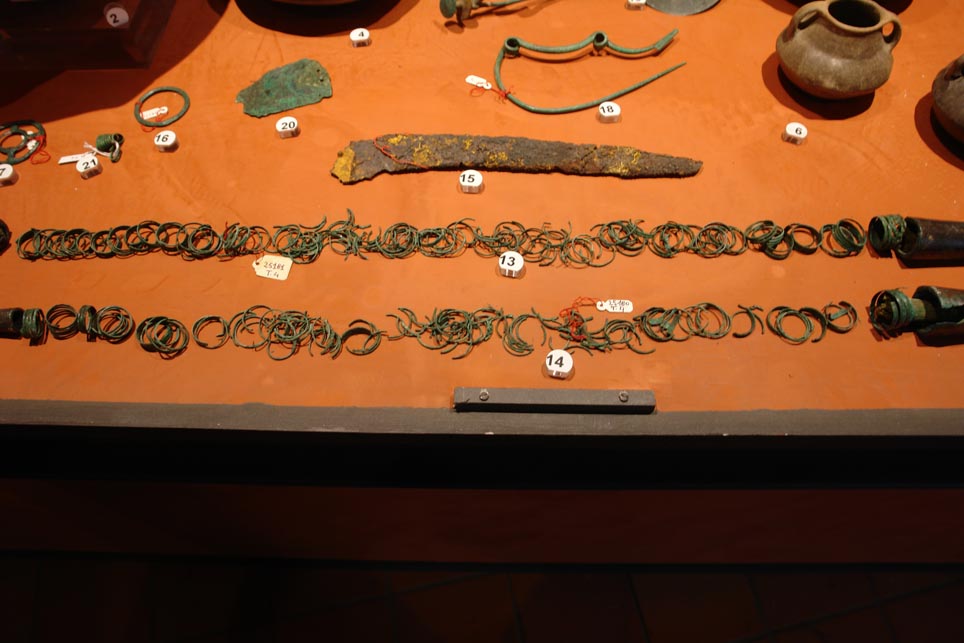Spirale in bronzo con funzione di rivestimento di asta lignea di lancia. Il tratto iniziale è a fascetta, il resto a filo
