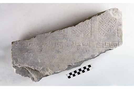 frammento di forma irregolarmente quadrangolare, allungato, pertinente alla parte centro-inferiore di una stele