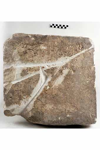 lastra di forma quadrangolare, pertinente a parte inferiore di stele