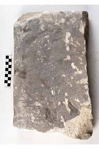 frammento di forma approssimativamente rettangolare, pertinente a parte inferiore di stele
