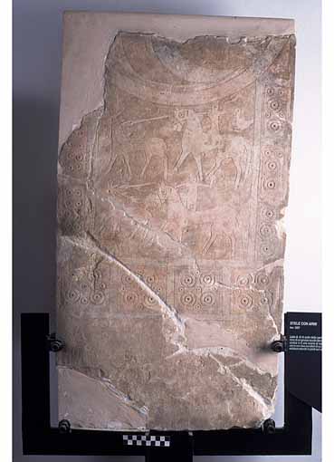 lastra pertinente alla parte inferiore di una stele con armi