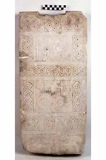 stele con ornamenti a spalle appena rialzate, lastra di forma rettangolare