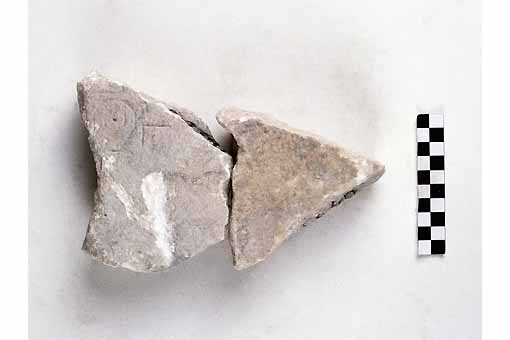 due frammenti di forma triangolare, pertinenti a parte centrale di stele con ornamenti