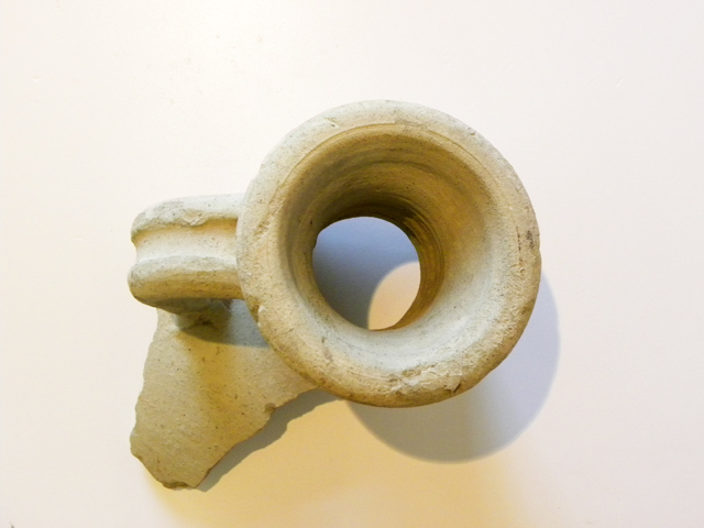Frammento d'anfora con collo cilindrico, orlo a collare ingrossato, ansa a nastro costolata