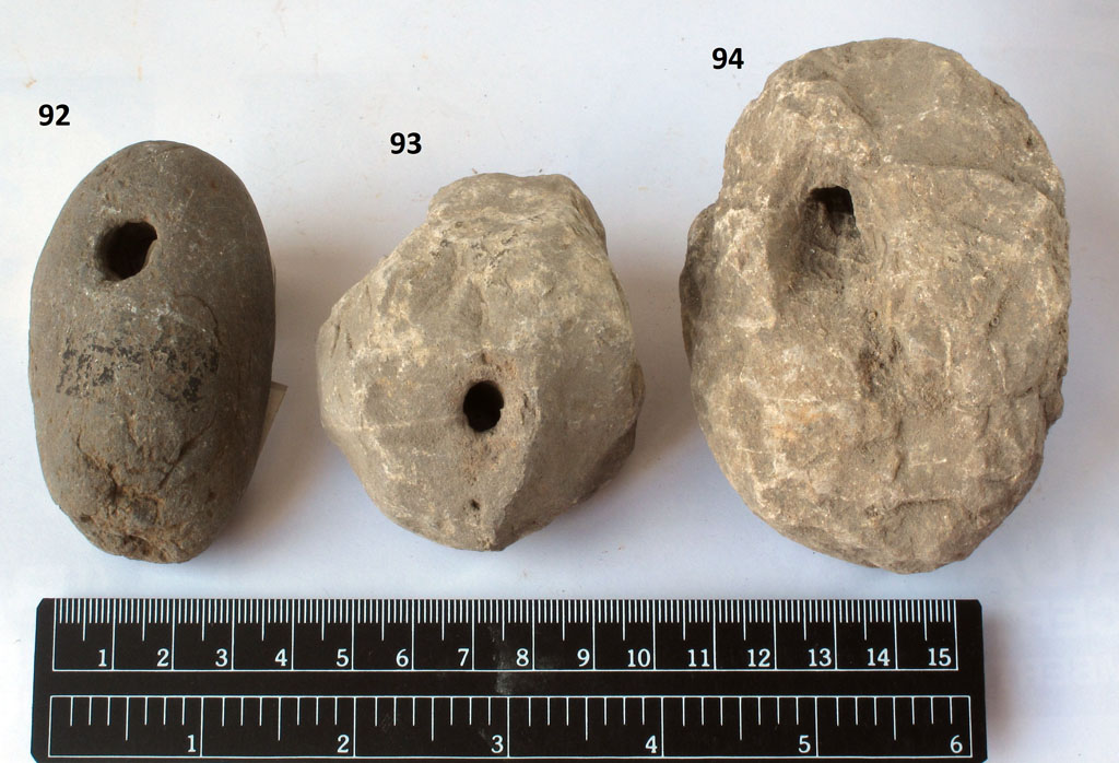 Testa di mazza di forma sub-circolare, con foro circolare per l'immanicatura