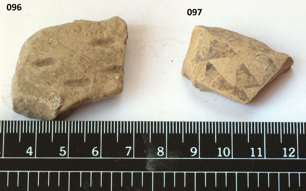 Frammento di parete. Decorazione dipinta con motivo a denti di lupo