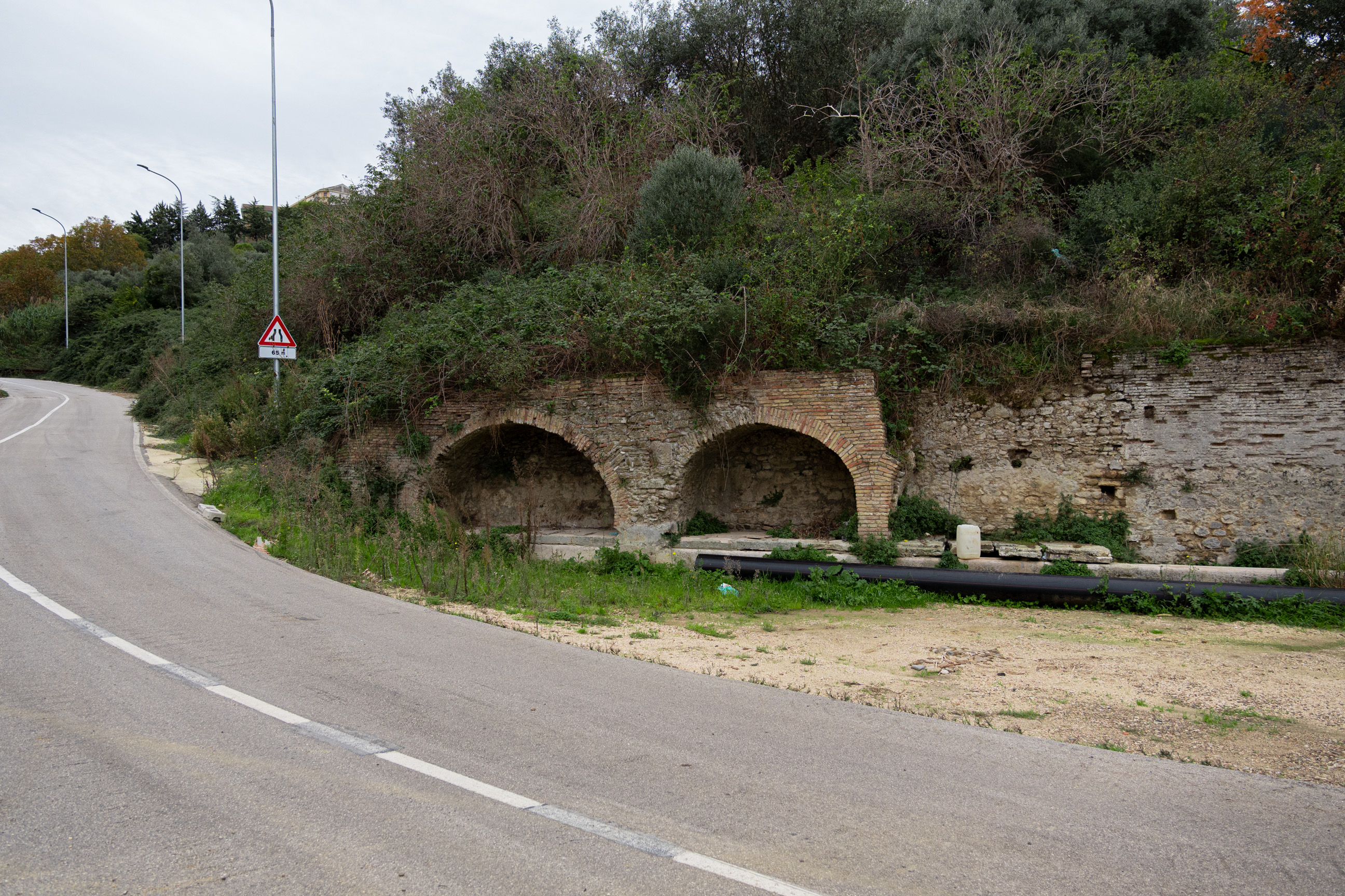 L’acquedotto sotterraneo per la raccolta di acque sorgive era situato in una conca ai piedi dell’abitato. Sono visibili i resti delle strutture per la captazione dell’acqua, realizzate in mattoni e addossate alla collina, e si riconoscono una vasca longitudinale, oggi quasi del tutto interrata, e alcune cisterne con arcate sovrastanti, di cui se ne conservano solo due. Con molta probabilità coevo alle fontane era un ambiente rettangolare scoperto realizzato in mattoni, situato di fronte alle fontane. Le fontane vennero fatte edificare dal magistrato Publio Fundaio Prisco, a sue spese, e furono fonte idrica per gli ascolani fino alla costruzione dell’Acquedotto Pugliese nel 1900