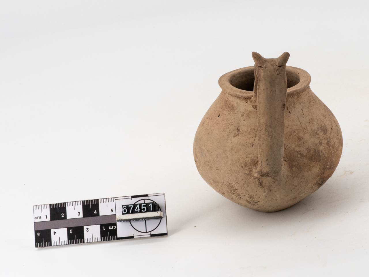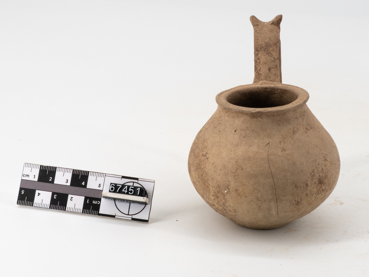 Orlo piatto, corpo piriforme, fondo piatto, ansa sormontante