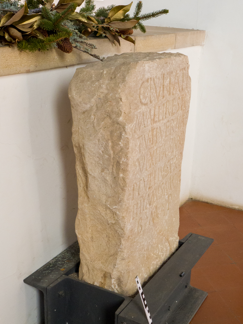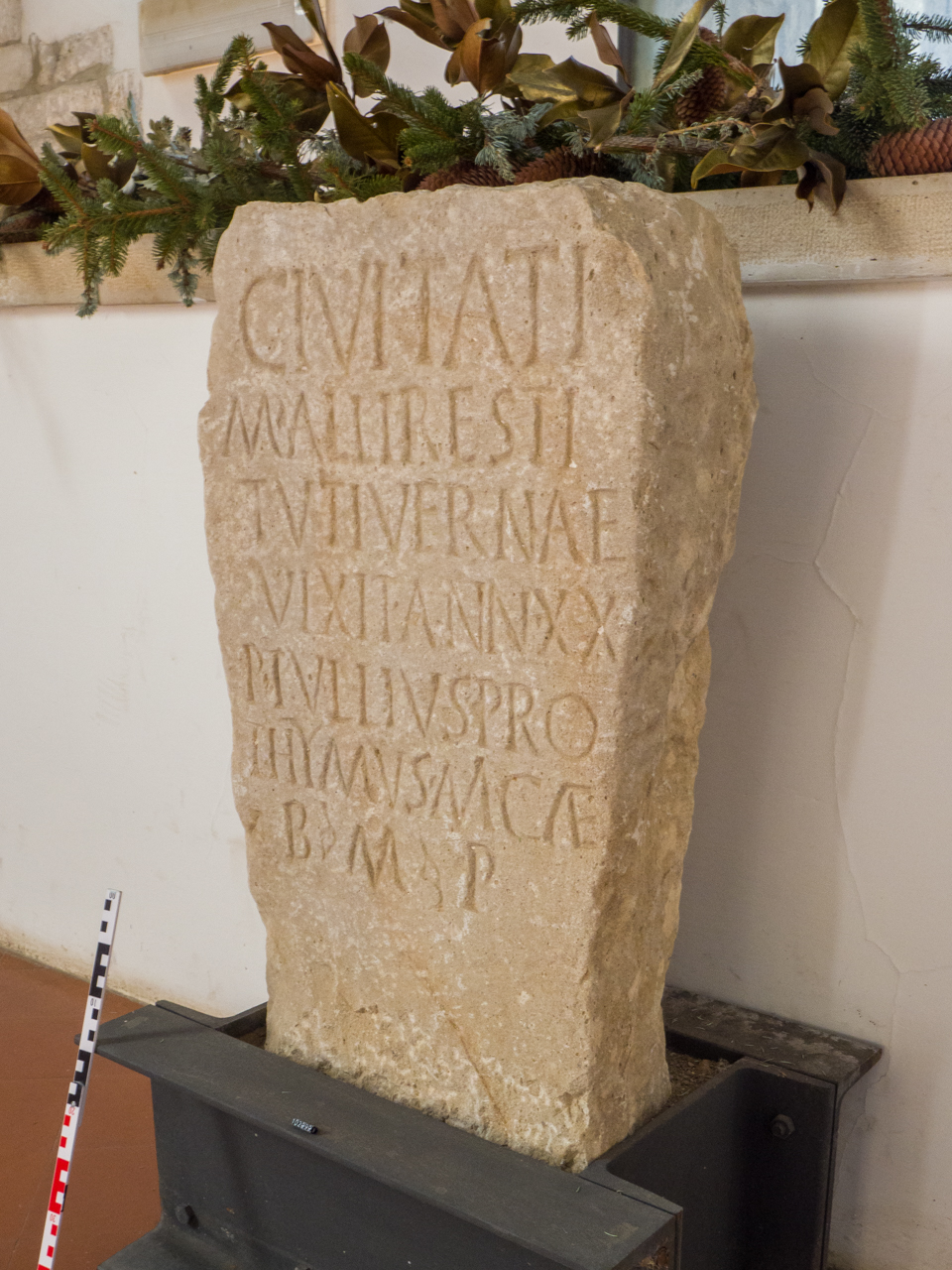 - ISCRIZIONI Civitati M(arci) Alli Resti/tuti vernae, vixit ann(os) XX, P(ublius) Tullius Pro/thymus âmicâe b(ene) m(erenti) p(osuit) - maiuscolo - a incisione - latino