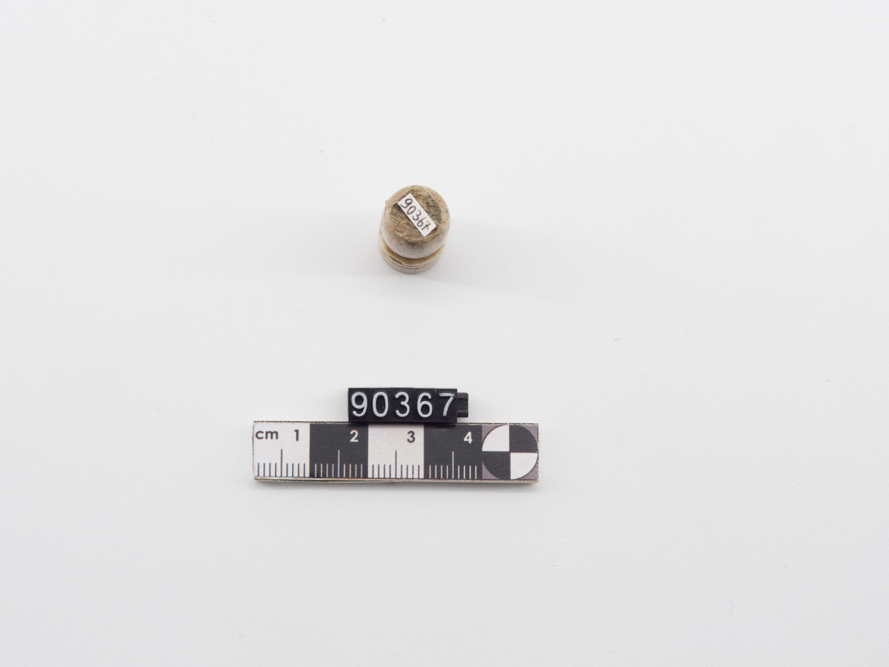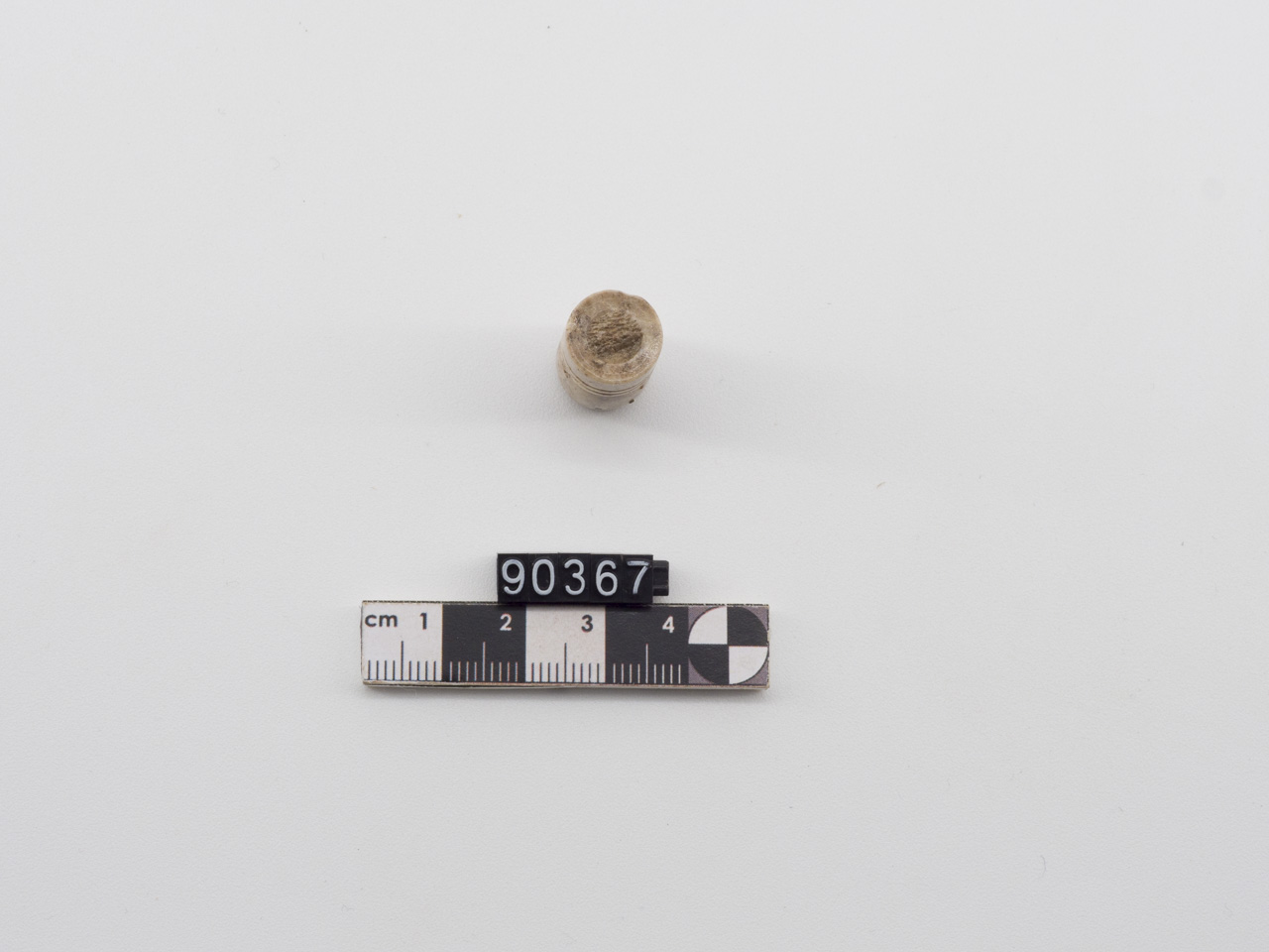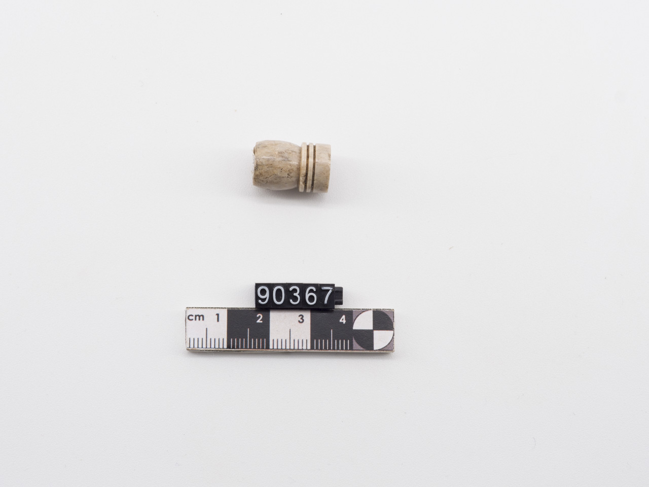 Piede in osso di cofanetto, di forma cilindrica arrotondata, con due solcature circolari nella parte superiore