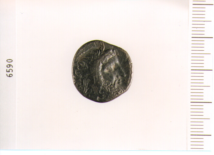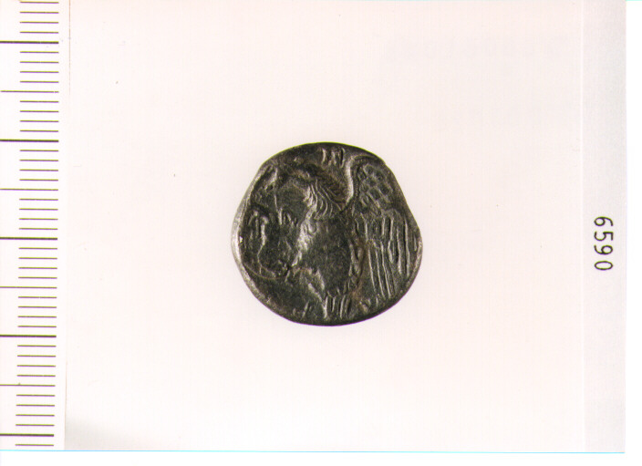 D/ TESTA DI ZEUS LAUREATO E BARBATO A D.; R/ AQUILA IN VOLO A S. CHE GHERMISCE LEPRE; A S. LEG