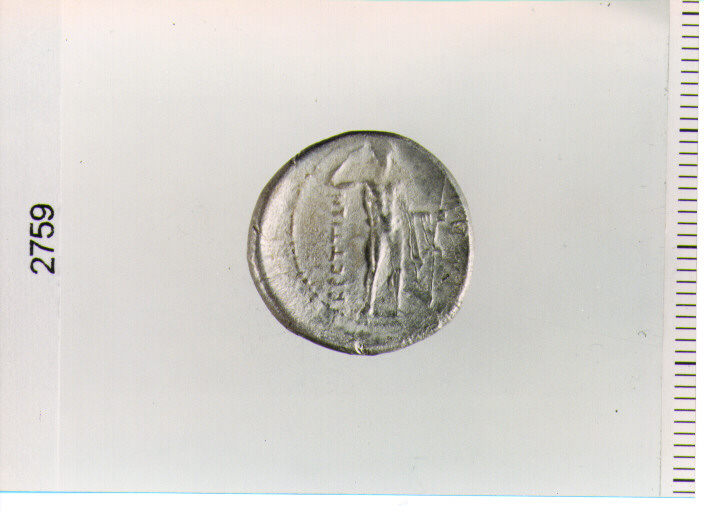D/ BUSTO DI NIKE ALATA A D., CON DIADEMA ED ORECCHINI; C. P.; A S. DUE MEZZELUNE; R/ DIONISO STANTE A FRONTE, NUDO, SI INCORONA CON LA D. E TIENE CLAMIDE SUL BRACCIO; A S. LEGENDA; A D. SERPENTE