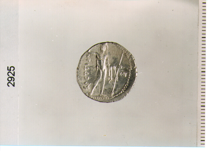 D/ BUSTO DI NIKE ALATA A D., CON DIADEMA ED ORECCHINI; A S., UCCELLO; C. P.; R/ DIONISO STANTE A FRONTE, NUDO, SI INCORONA CON LA D. E TIENE CLAMIDE SUL BRACCIO; A S., LEGENDA; A D., MONOGRAMMA