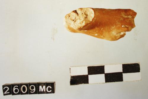 Piede di figura maschile, robusto, mutilo di parte delle dita, collo pronunciato, tallone arrotondato, mutilo alla caviglia, fondo sagomato, superficie liscia