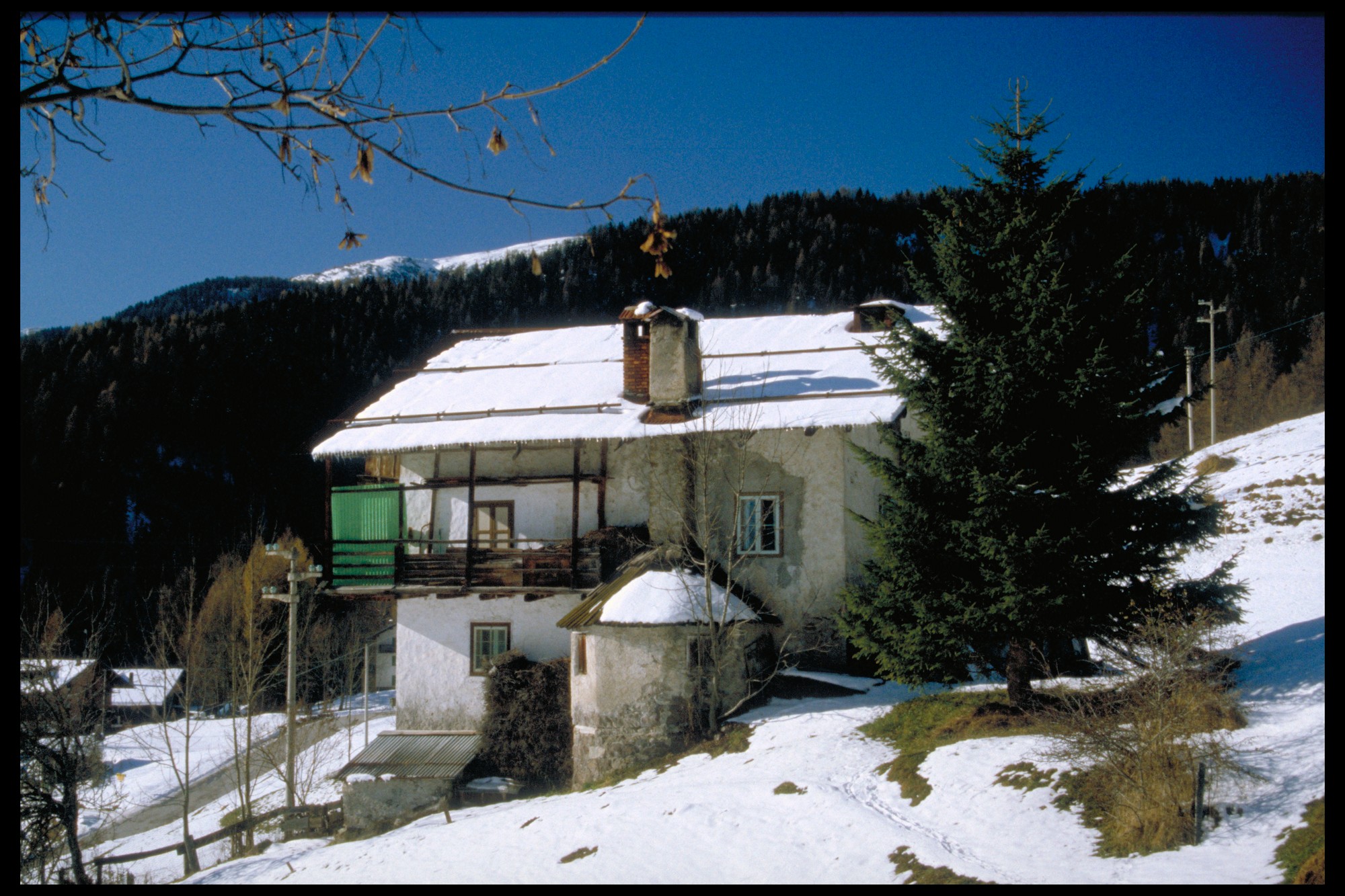 Struttura orizzontale in pietra, struttura verticale in pietra, tetto in legno a due falde con copertura in lamiera