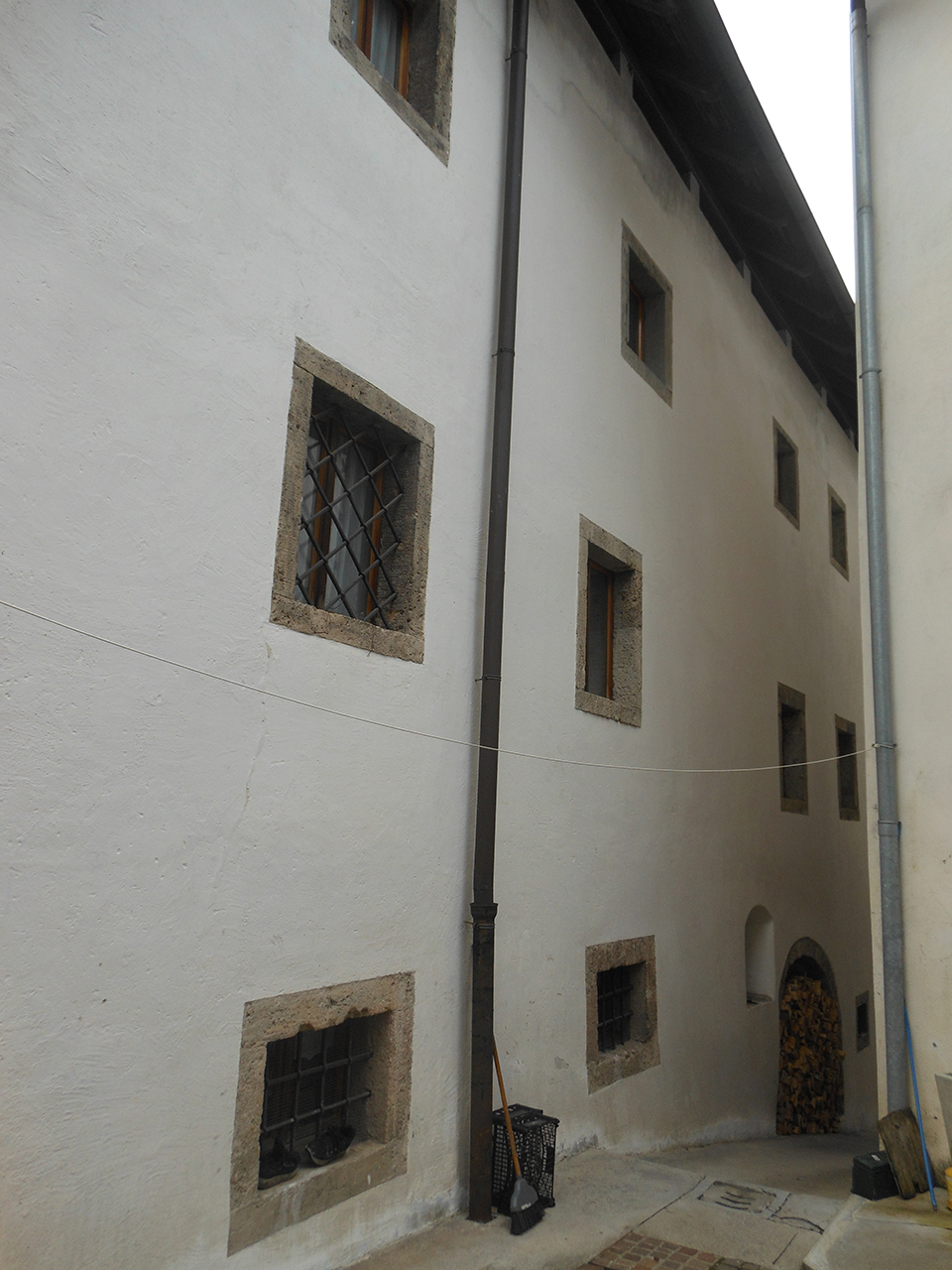 Si tratta di una cellula abitativa inclusa nel complesso di Casa della Pesa; la pianta è pressoché quadrata, con l'affaccio su Borgo Vischia. Il piano terra è caratterizzato dal portico passante che collega Piazza Ustin a Borgo Vischia. Le caratteristiche tipologiche rimandano alla casa carnica, con solai a volte e murature in pietrame