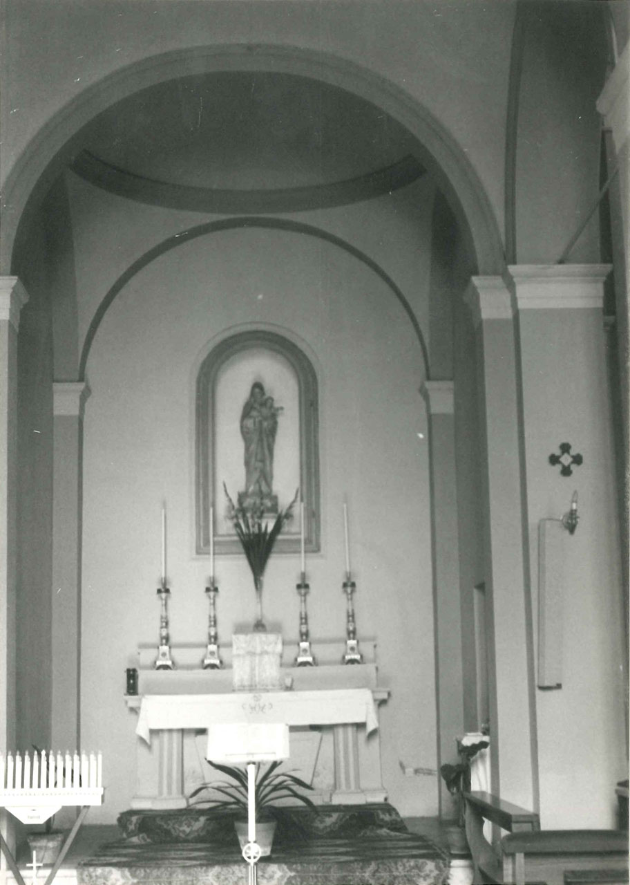 L’edificio è a pianta rettangolare con tre navate con accorpato, lateralmente, il campanile a pianta quadrata, coperto a cupola. La facciata si presenta estremamente piatta; le uniche decorazioni sono le due volute in corrispondenza delle navate laterali, un doppio ordine di lesene sovrapposte, un occhio ed una trabeazione in corrispondenza della trabeazione. Il paramento è in mattoni a vista per la facciata ed il campanile; lateralmente e per l’abside si ha un intonaco tutt’ora in cattive condizioni. Una serie di finestre a lunetta distribuite lateralmente illumina l’interno. Una doppia serie di archi a tutto sesto divide le navate laterali da quella centrale. La copertura è, all’interno, a volta cilindrica con unghie in corrispondenza delle finestre. Una trabeazione gira tutt’attorno dove il piedritto si appoggia alle colonne. L’abside, semicircolare e con copertura emisferica è dotata di una ricca trabeazione con triglifi. La pavimentazione è in cotto