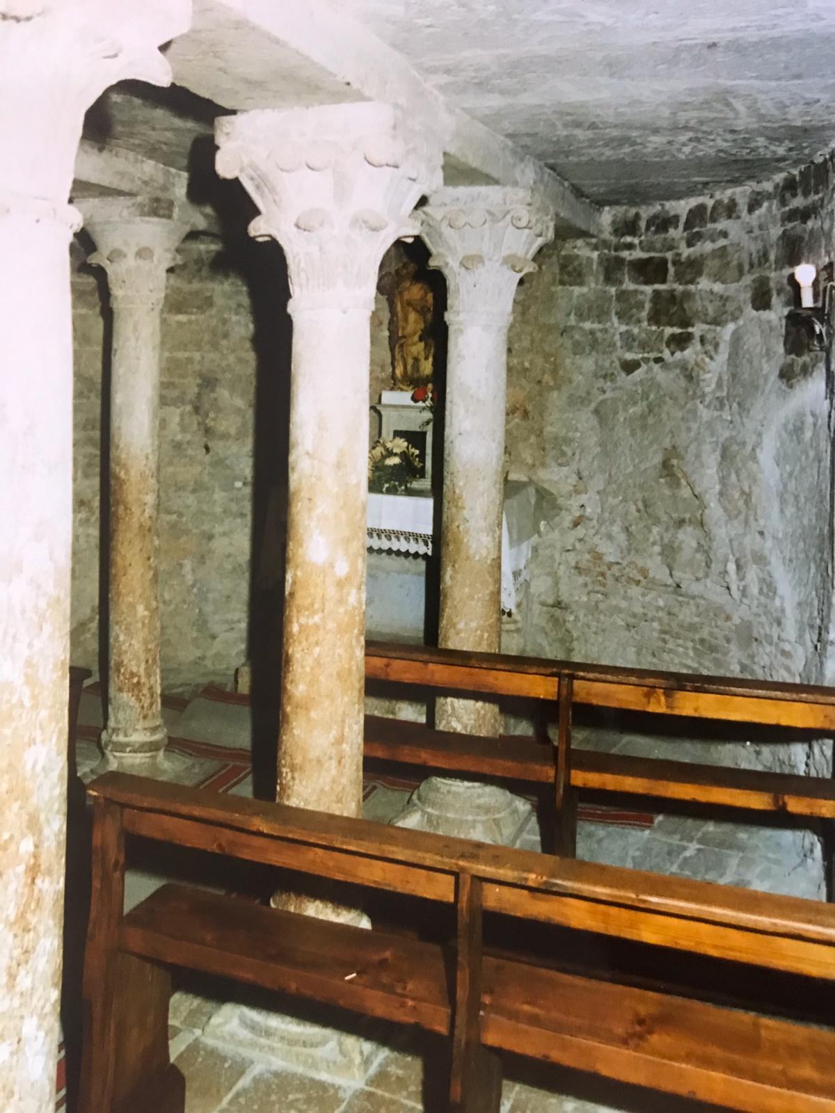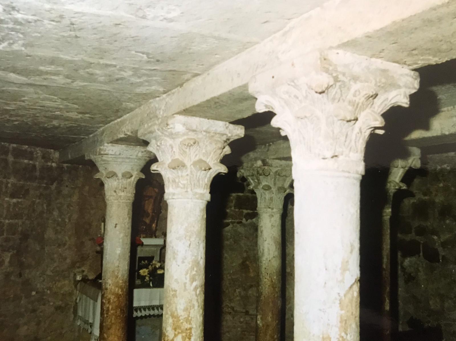 edificio di forma rettangolare con muri perimetrali in pietra a ricorsi quasi regolari e colonnine che scandiscono le navate