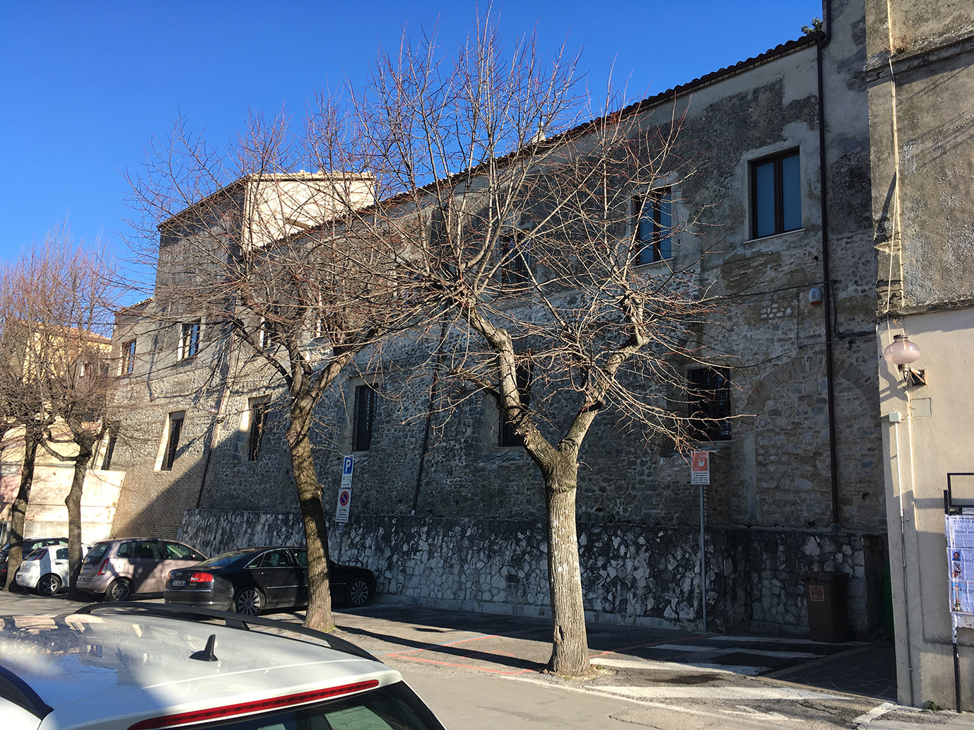 L’edificio costituito da un piano più il piano terreno (entrambi abitati), presenta la facciata caratterizzata da un primo ordine di finestre aperte al piano terreno, intervallate da porte e un ordine di finestre al primo piano. La copertura è a tetto. La pianta è formata da un chiostro circondato da tre corpi rettangolari. Guardando l’edificio sulla sx, vi è la chiesa annessa di S. Francesco l’entrata al municipio è accanto alla chiesa. Per accedere all’edificio, si attraversa un’ala del chiostro alla cui dx si trovano nove ambienti adibiti ad aule scolastiche, con relativi servizi. Nel blocco centrale al piano terreno si apre il chiostro al primo piano, salendo una rampa di scale, si articolano i corridoi di collegamento fra i vari uffici, ricavati da passaggi che prima erano scoperti. Rispetto alle scale sulla sx si sviluppano due ambienti che comprendono la pretura e sull’altro lato, gli edifici comunali